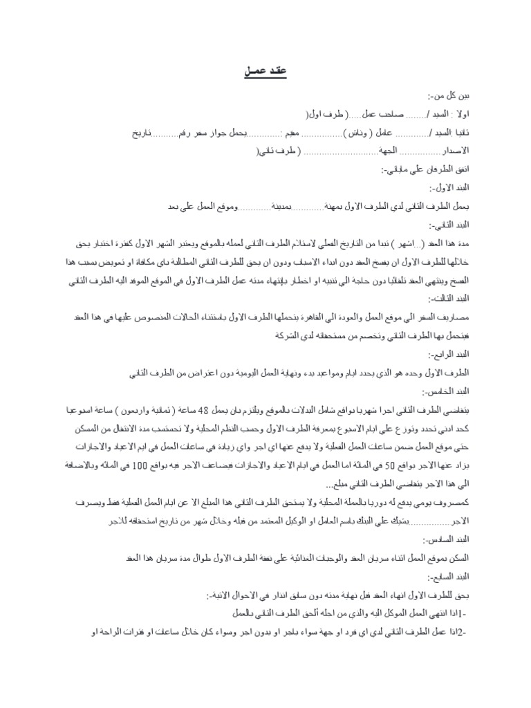 نموذج عقد عمل سائق خاص وقت العرب