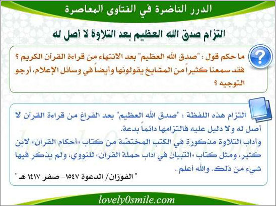 قول صدق الله العظيم بعد الانتهاء من قراءة القران بدعة منتدى الكفيل