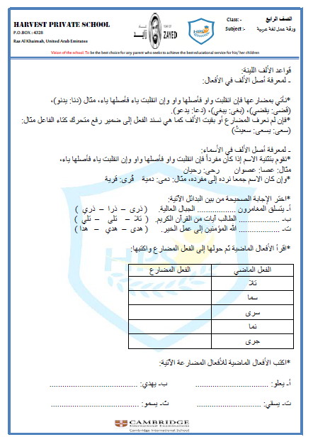ورقة عمل الالف اللينة في نهاية الكلمات الصف الرابع لغة عربية الفصل الثاني 2017 2018 المناهج الإماراتية