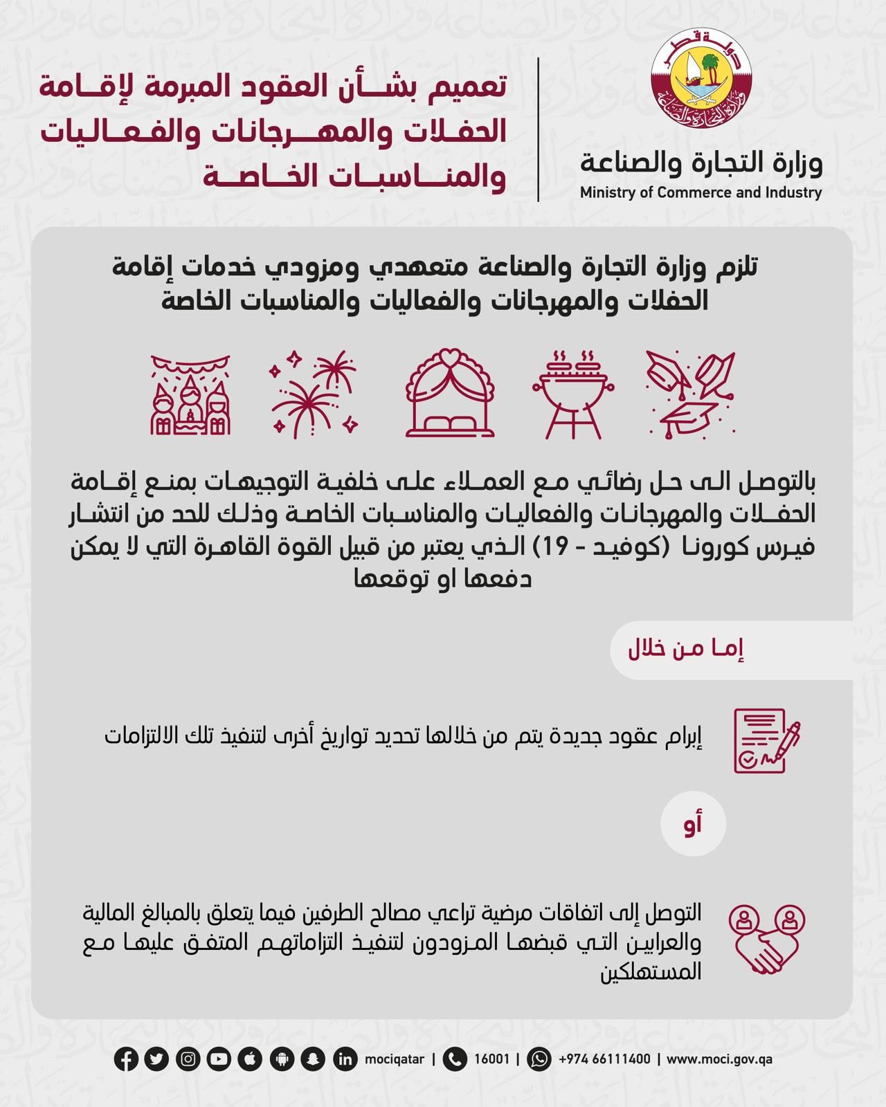 وزارة التجارة والصناعة On Twitter تعميم بشأن العقود المبرمة لإقامة الحفلات والمهرجانات والفعاليات والمناسبات الخاصة قطر سلامتك هي سلامتي