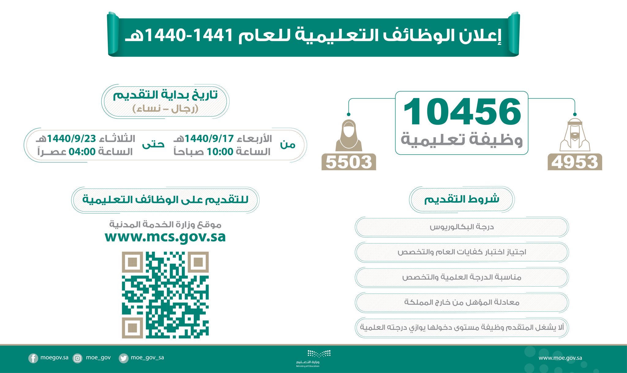 وزارة التعليم عام Twitterissa وزارة التعليم تعلن عن 10456 وظيفة ضمن الوظائف التعليمية للعام الدراسي ١٤٤١هـ بالتنسيق مع وزارة الخدمة المدنية Https T Co Oer4wnlnak Https T Co 7k9r0jph4s