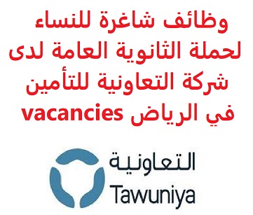 وظائف شاغرة في السعودية وظائف السعودية وظائف شاغرة للنساء لحملة الثانوية العامة لدى شركة التعاونية للتأمين في الرياض Vacancies