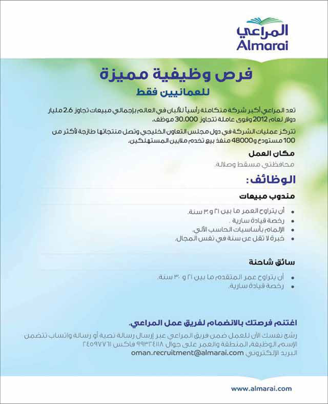 شركة المراعي تعلن عن وظائف في سلطنة عمان لجميع المؤهلات والجنسيات الحياة اليوم