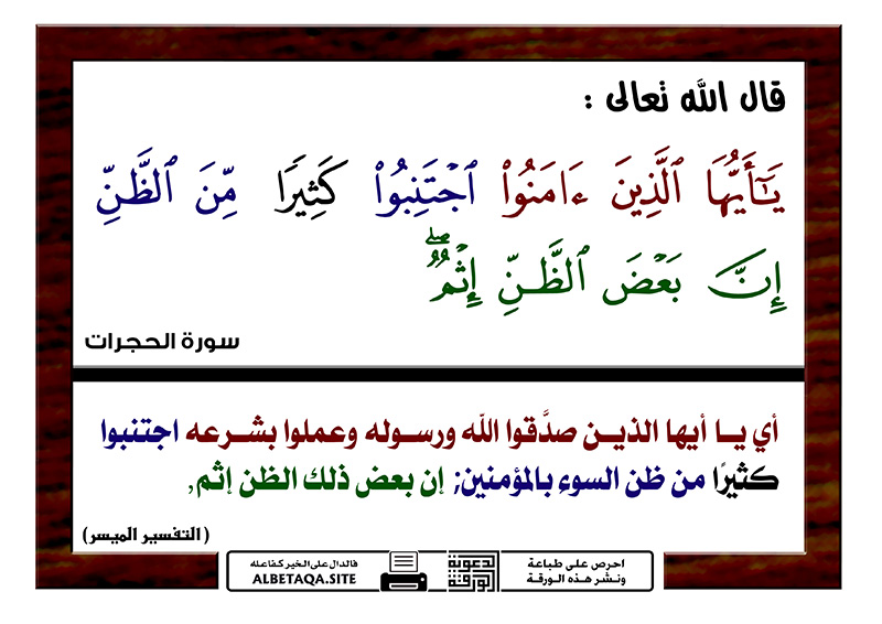 عبد الله ابن خزي م سبيع الغلباء On Twitter يا أيها الذين آمنوا اجتنبوا كثيرا من الظن إن بعض الظن إثم ولا تجسسوا ولا يغتب بعضكم بعضا أيحب أحدكم أن يأكل لحم Https T Co Yc9pyvsqvi