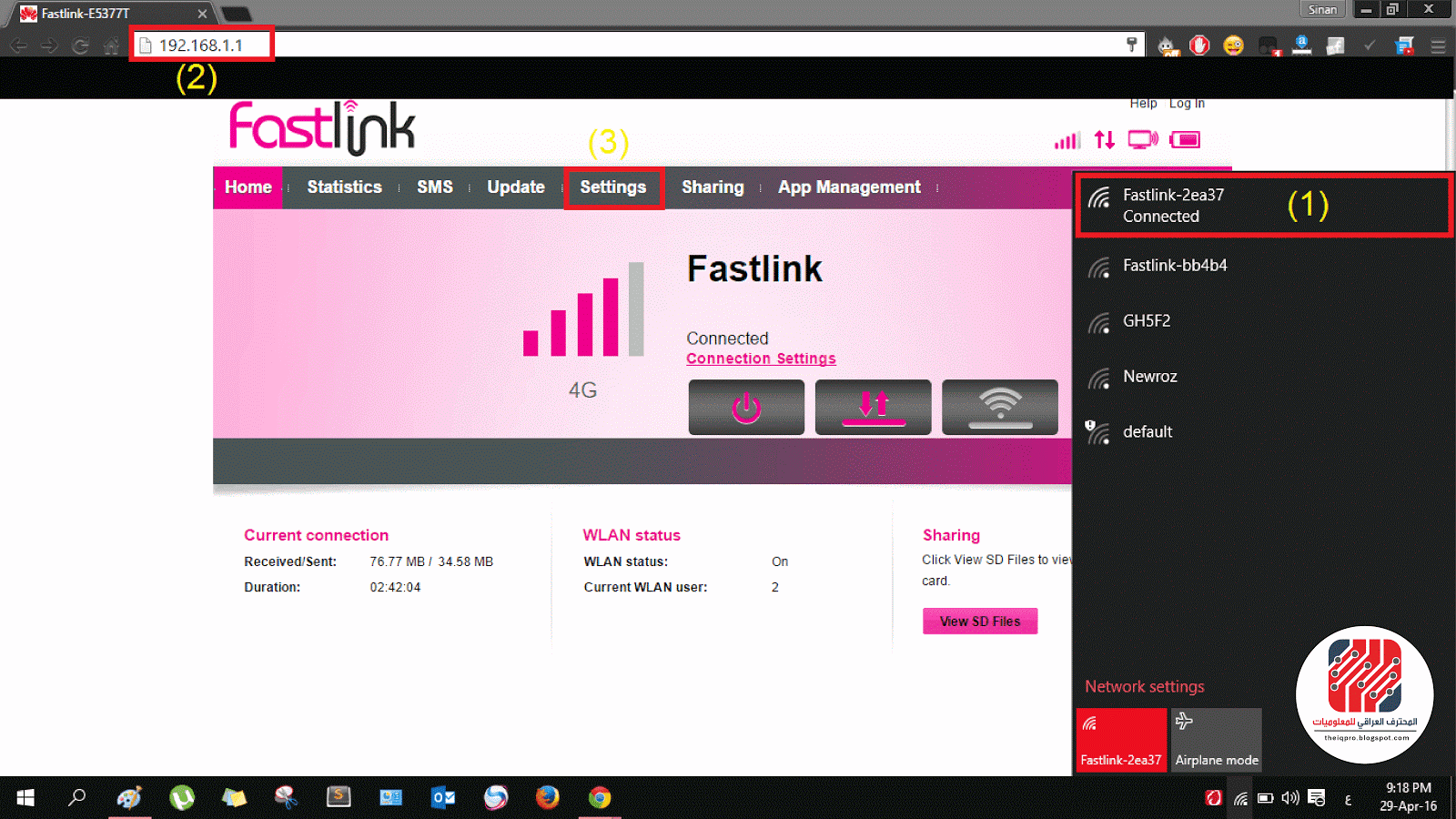 تغيير كلمة مرور الويفي و التحكم في اعدادات المودم 4g اتصالات الجزائر مدونة الامل واب
