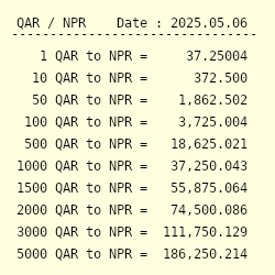 1 qatari riyal to nepali rupees. Historical exchange rates for qatari riyal to indian rupee 19 93 20 15 20 37 20 59 20 80 21 02 may 18 jun 02 jun 17 jul 02 jul 17 aug 01 aug 16 aug 31 120 day exchange rate history for qar to inr quick conversions from qatari riyal to indian rupee. Historical exchange rates for qatari riyal to nepalese rupee 31 9 32 2 32 5 32 8 33 2 33 5 may 16 may 31 jun 15 jun 30 jul 15 jul 30 aug 14 aug 29 120 day exchange rate history for qar to npr quick conversions from qatari riyal to nepalese rupee. Initially the rupee was called the mohru in nepalese. Its value was pegged to the indian rupee in 1993 at a rate of 1 6 nepalese rupees.