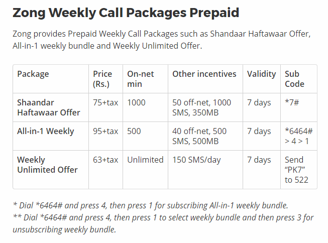 Zong Net Pkg Weekly Complete Detail About All Bundles Teachnets