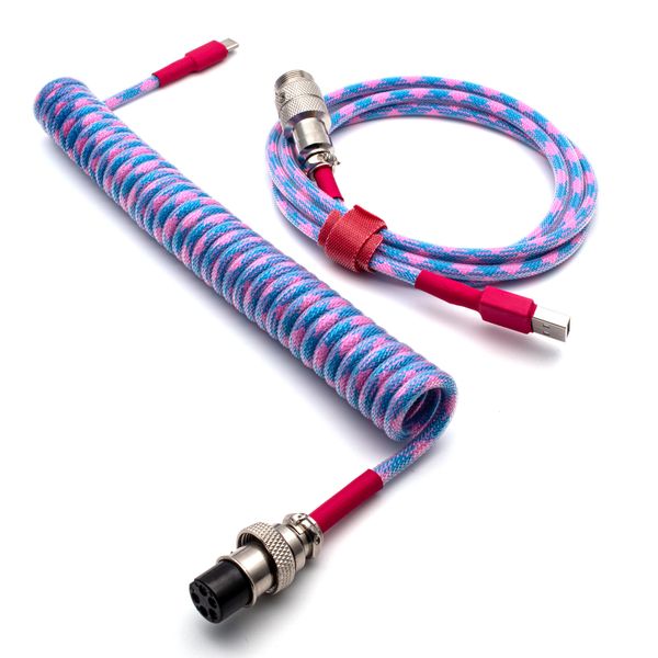 Custom Coiled Type C Cable Split For Tai Hao Miami Lights Anne Pro 2 Keyboard Aviator