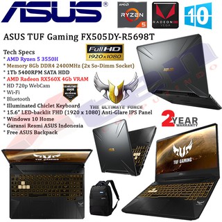 Asus Tuf Gaming Fx505dy R5698t Ryzen 5 3350h 8gb 1tb Radeon Rx560x 4gb 15 6 Fhd Win 10 Home Shopee Indonesia