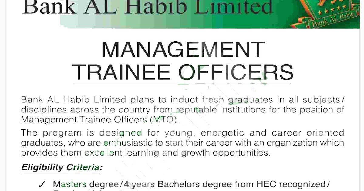 Bank Al Habib Ltd Jobs 2020 For Management Trainee Officers Mtos All Pakistan Pakistan Jobs Jobs Com Pk