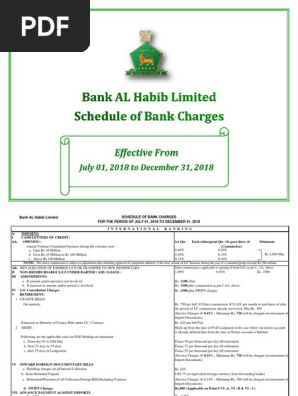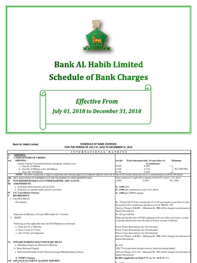 Bank Al Habib Schedule Of Charges Cheque Credit Card
