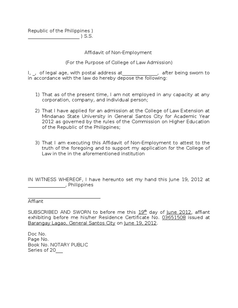 Affidavit On Non Employment Doc Affidavit Civil Law Common Law