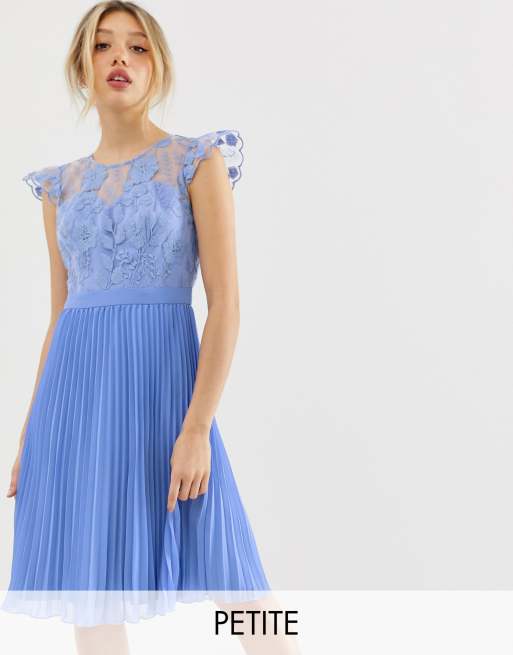 Chi Chi London Petite Midi Dress With Pleated Skirt And Embroidered Top Detail In Cornflower Blue Asos