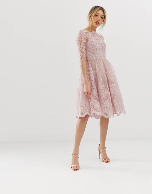 Chi Chi London Petite Premium Lace Midi Dress With 3 4 Sleeve In Mink From Asos On 21 Buttons