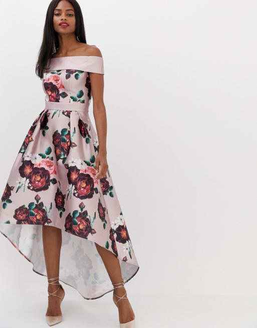 Chi Chi Gail Floral High Low Bardot Dress Pink Multi Myonewedding Co Uk