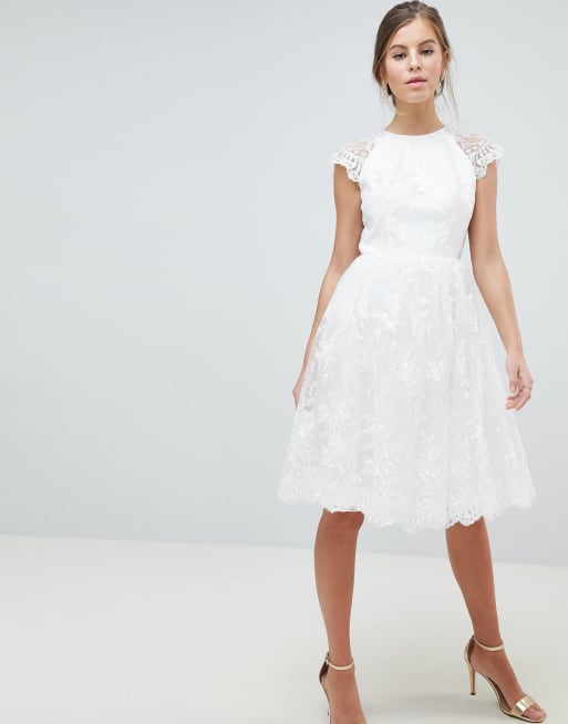 Chi Chi London Lace Midi Skater Dress In White Asos