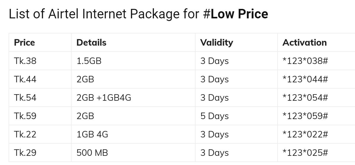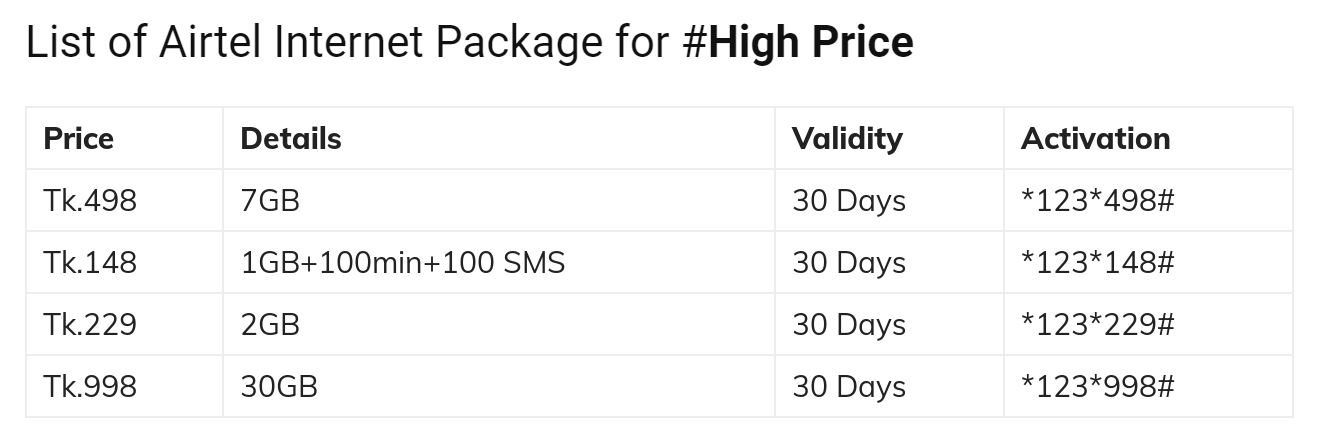 Every person can buy giving internet package. Airtel internet pack all internet offer 2020 regular data pack airtel started the new internet offer 2020 there are too many airtel internet packs. Keyboard arrow down validity 0 hours to 30 days 0 0 720 720 price 0 bdt to 2000 bdt 0 0 2000 2000 volume 0 mb to 30 gb 0 0 30720.