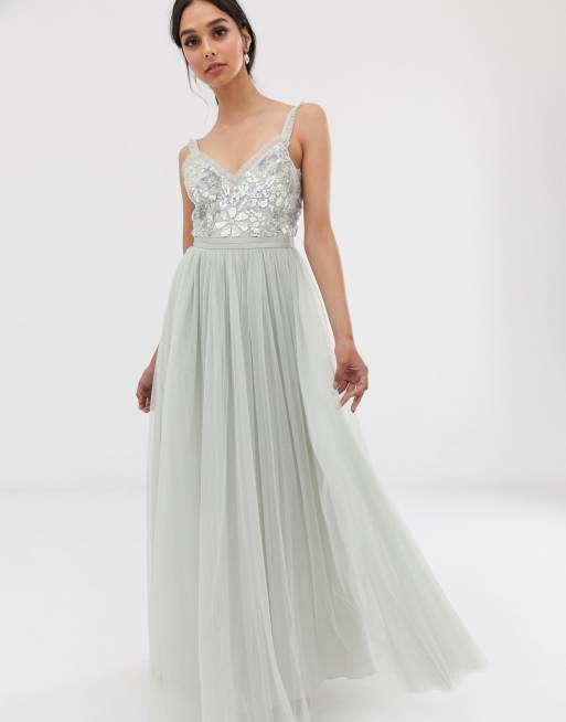 Needle Thread Sequin Maxi Dress In Mint Green Asos