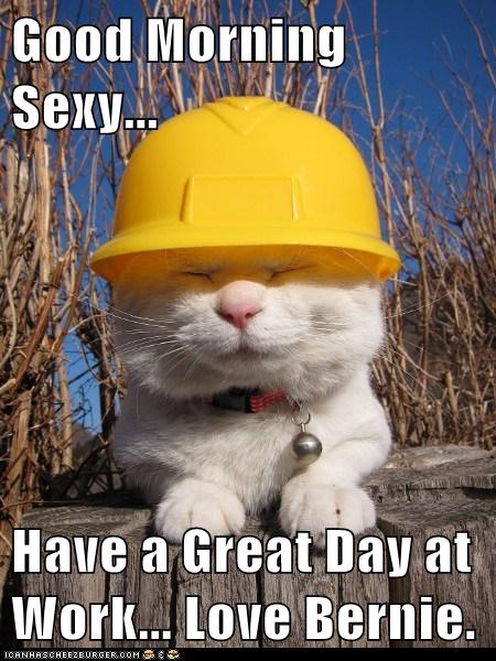 Good Morning Sexy Have A Great Day At Work Love Bernie Lolcats Lol Cat Memes Funny Cats Funny Cat Pictures With Words On Them Funny Pictures Lol Cat Memes Lol Cats