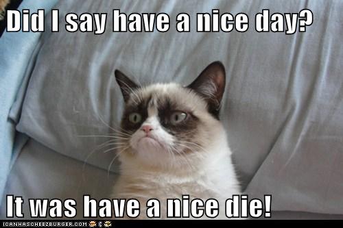 Did I Say Have A Nice Day It Was Have A Nice Die Lolcats Lol Cat Memes Funny Cats Funny Cat Pictures With Words On Them